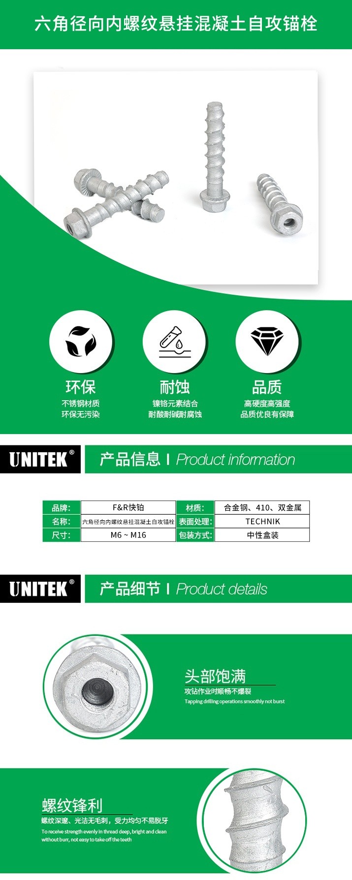 六角徑向內(nèi)螺紋懸掛混凝土自攻錨栓