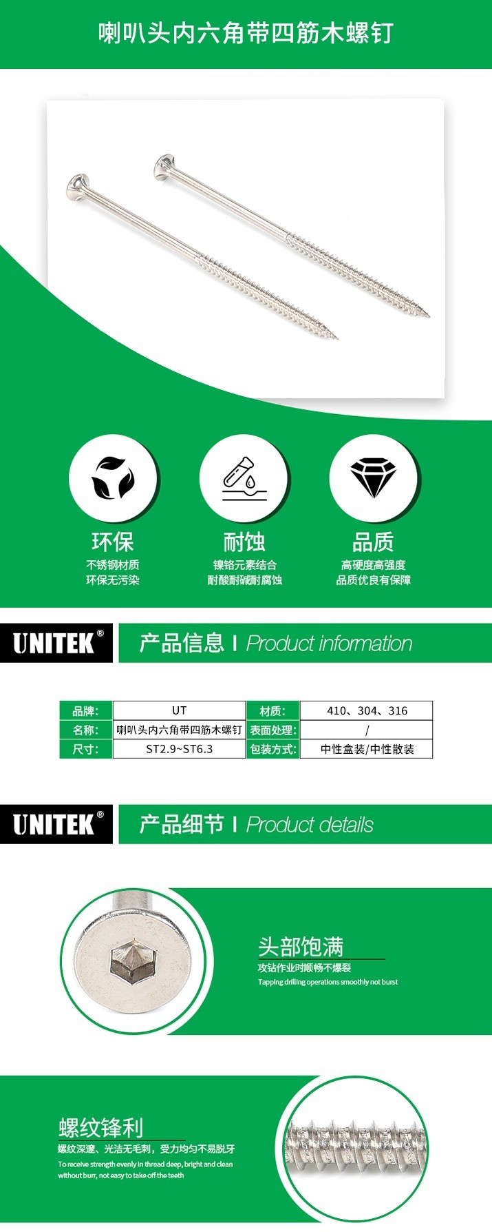喇叭頭內(nèi)六角帶四筋木螺釘